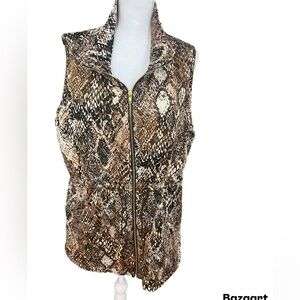 New Directions 2X Leopard Zip Up Vest With Pockets W/drawstrings At Waist