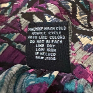 New Directions 2X Shirt Top Purple Geometric Button Up 3/4 Sleeve Keyhole Scoop Neck