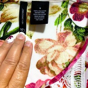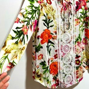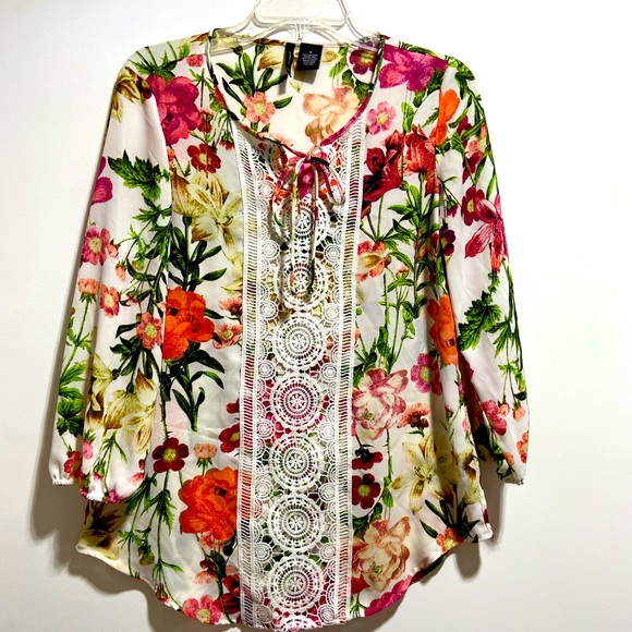 New Directions blouse very colorful with embroidery lace down the front it’s a size small. Comes from smoke free home.