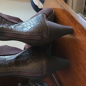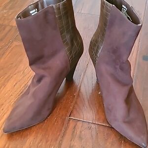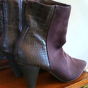 New Directions Alysse boots, size 9. Chocolate brown in color. Suede & embossed croc. Zip closure in the back.