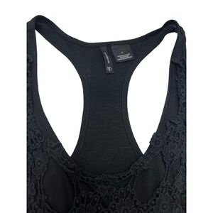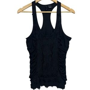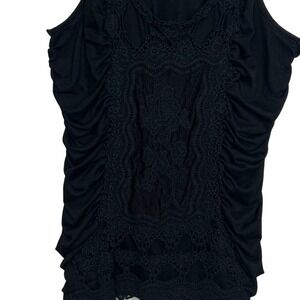 New Directions Black Lace Ruched Stretch Women's Tank Top Large