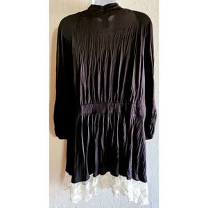 black white lace trim, lightweight, 3/4 ruched sleeves, pleated back, flowy, soft, cardigan, open front