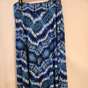 Elegant maxi skirt by New Directions. Features a striking blue and white pattern. Ideal for casual wear.