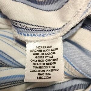 Stylish midi dress with blue and white stripes. Includes a waist tie and short sleeves. Perfect for everyday wear.