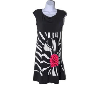 New Directions Bold Zebra Print Dress with Pink Flower | Size 4