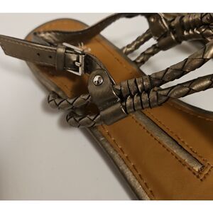 Step out in style with these chic braided metallic sandals. Perfect for any occasion, these sandals offer both comfort and elegance.
