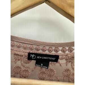 New Directions Brown V-Neck Long Sleeve Semi Sheer Top Women's Size Small S