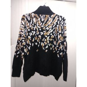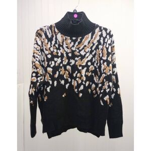 Pre-owned sweater by new directions. Dark brown tan and white pattern, animal like?. Mock neck, super soft material and medium weight.