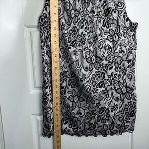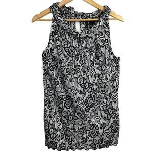 New Directions Business Women's Black White Floral Printed Sleeveless Top Large
