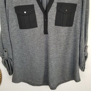 New Directions Button Down 2-Pocket Blouse with Yoke. Size Large.