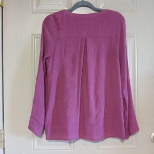 New Directions Button Front Raglan Sleeves V-neckline Woman Blouse Size M,Stylish purple button-up cardigan with lace hem. Perfect for layering.,no stretch,pre own still in good condition check pictures very carefully before your purchase please feel free for make you reasonable offer thank you ♥️