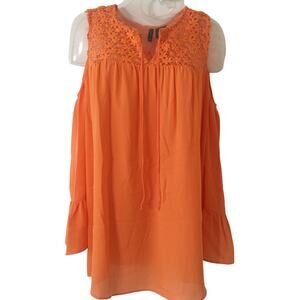 New Directions, Coral, Orange Lace Cold shoulder, Long Bell Sleeves Large Blouse
