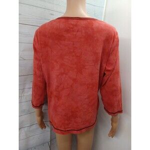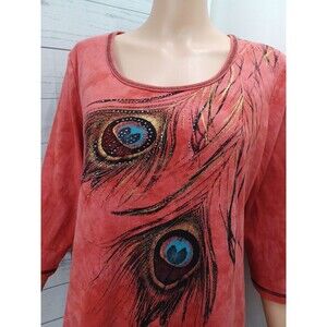 New Directions Coral Red Embellished Knit Top Peacock Feathers Womens XL Cotton