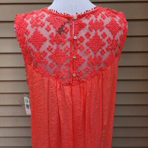 New Directions Coral Red Shift Dress NWT Lace Asymmetric Sleeveless Solid
