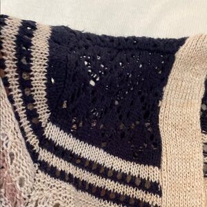 Wrap yourself in comfort with this New Directions cardigan, showcasing a beautiful blue and cream striped design. The open-front style and fringe hem add a unique touch, making it an ideal choice for layering. Its medium-weight knit provides warmth and a relaxed fit for everyday wear.