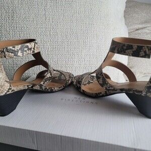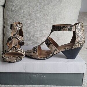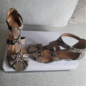 New Directions Cream Devinda Snake Print Strappy Sandal Vegan Faux leather