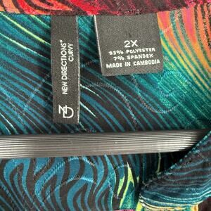 New Directions Curvy Plus Size 2X Stretchy Tropical Artsy Blouse Shirt Top Beach
