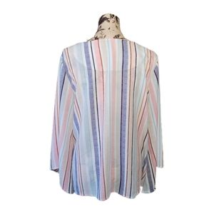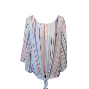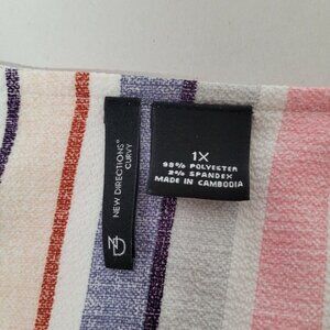 New Directions Curvy Plus Sz 1X Striped Blouse Top 3/4 Length Sleeves TINY FLAW