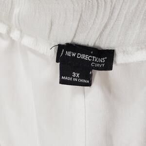 New Directions - Women's White Curvy Lace Waist band Trim Flowy Pants Size 3X. Shell Polyester, rayon fabrics. Lining 100%Polyester. Lace Trim Polyester, spandex fabrics. Approx. measurements Waist 42 in. Rise 13 in. Inseam 31 in. Pre-owned in good condition, no holes or stain.