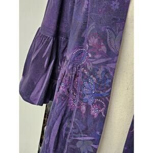 New Directions Fairy Open Front Cardigan Size Med Boho Purple Floral Artsy