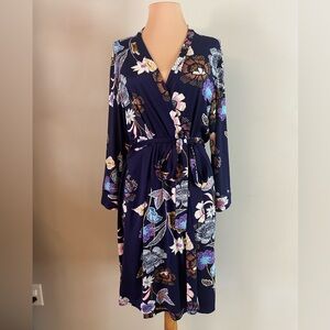 Elegant floral print robe. Soft fabric with a tie waist. Perfect for lounging.