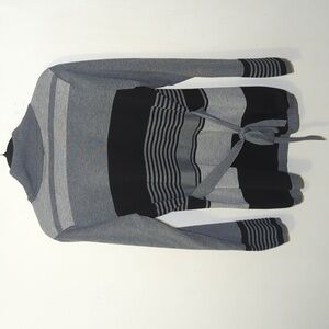 New Directions Gray + Black Belted Open-Front Shawl Collar Cardigan Size M
