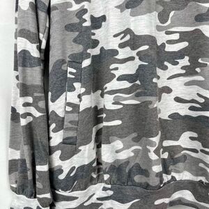 New Directions Gray Camouflage Cowl Neck Sweatshirt Large