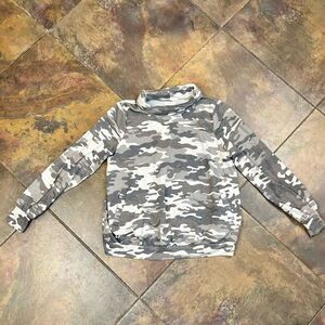 New Directions Gray Camouflage Cowl Neck Sweatshirt Large. Measurements in photos. In good, pre-loved (used) condition.