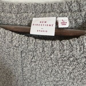 Stay cozy and stylish in this New Directions chunky knit sweater in a versatile gray color. Features an oversized fit, soft texture, and classic crew neckline—perfect for layering on chilly days. Size large in excellent used condition.