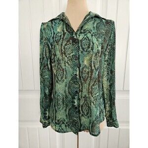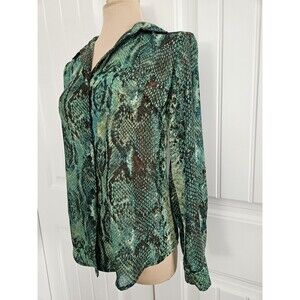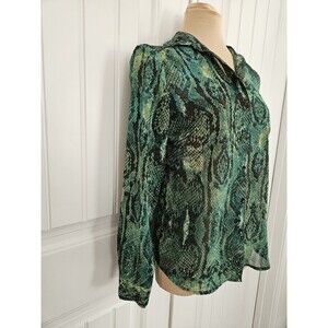 New Directions Green Snake Print Blouse With Roll Tab Sleeves Sheer Size PM