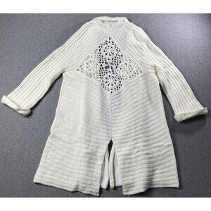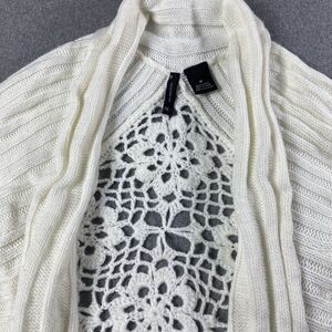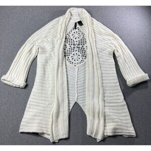 New Directions Knit Open Long Cardigan With Back Crochet Size M Ivory.