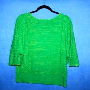 Embrace cozy style with this vibrant New Directions knit sweater! In a lively shade of green with a relaxed fit and comfortable dolman sleeves, this sweater is perfect for adding a pop of color to your casual outfits, transitioning between seasons, or a laid-back bohemian look.