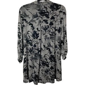 New Directions Large Gray/Black Tunic Shirt/Dress High/Low Hem 3/4 Ruched Sleeve