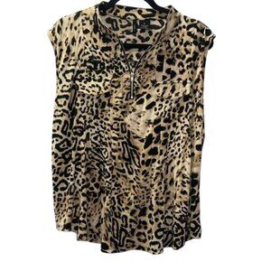 New Directions Leopard Print Blouse with Zipper