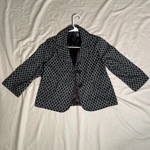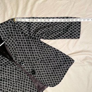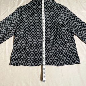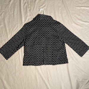 New Directions, double-buttoned long sleeve. Black and white pattern.