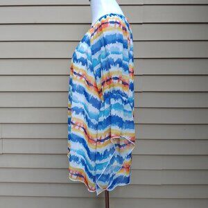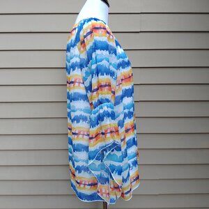 New Directions Multicolor Watercolor Abstract Blouse Flowy Sleeves Artistic