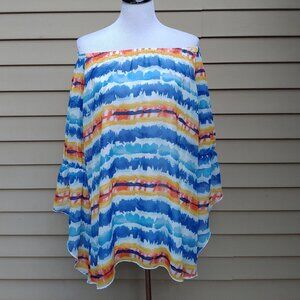 New Directions Multicolor Watercolor Abstract Blouse Flowy Sleeves Artistic Wearable Art Wearable Art