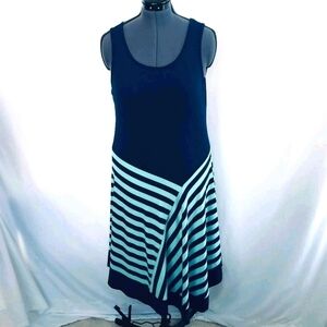 New Directions navy blue and light blue stripe dress. Gently used...size Large...no flaws noted...see photos for care details...011521