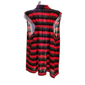 New Directions Open Front Cardigan Vest XL Red Black Stripe Lagenlook Boho