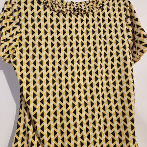 New Directions Petite Vintage Top PL Blue Yellow White Short Sleeve Blouse