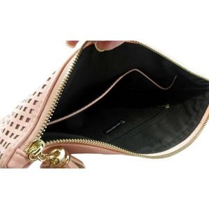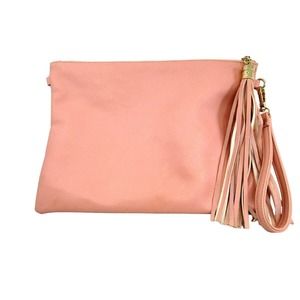 New Directions Pink Clutch Bag Purse Faux Leather Waffle Design Tassels