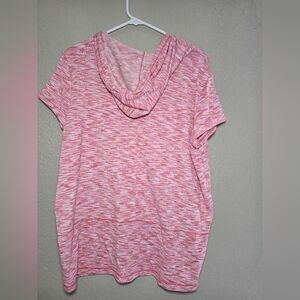 Comfortable short-sleeve hoodie. Pink with drawstring detail. Perfect for casual wear. Good condition