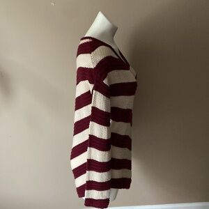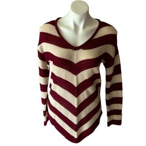 New Directions Red And Beige Striped Knit Casual Fall Sweater One Size