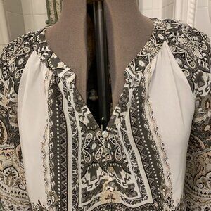New Directions. Size XL. Border Print Chiffon Pullover. Raglan Sleeve. B93.