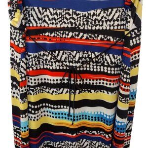 Step into summer style with this stunning New Directions Sleeveless Maxi Dress in Size 3X! This eye-catching, multi-color piece features a playful mix of polka dots and stripes in vibrant shades of black, white, blue, turquoise, red, yellow, and orange—perfect for adding a pop of color to your wardrobe. The dress showcases a flattering V-neckline and is finished with an attached skinny rope belt, accentuated by a chic 2.5” gold chain embellishment for a touch of glam. The relaxed, loose-fitting silhouette is designed for comfort and movement, with a generously sized cut that drapes beautifully on the body. Ideal for warm weather, it’s perfect for brunches, vacations, or any summer occasion where you want to look and feel fabulous! Gently pre-owned and in good condition, this dress is ready to become a new favorite in your closet! Don’t miss out—add this versatile and stylish maxi to your collection today!