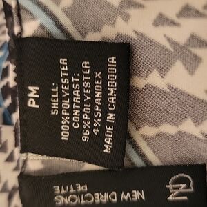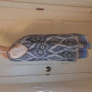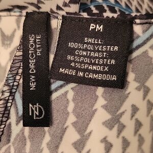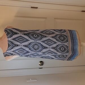 New Directions Layered Sleeveless Dress, Blue pattern with beige. Size PM. Excellent condition. Flowing overlay makes this dress so feminine. So cute for summer.