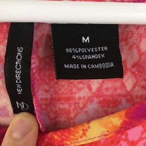 Light and flowy orange, pink, and yellow tunic style top. Perfect for a swimsuit cover or with a pair of jeans. Could also be great for a maternity belly bump!