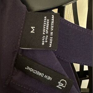 This elegant sleeveless top features a stylish draped neckline, w/ a keyhole feature in the front and black closure. The rich navy color adds a touch of sophistication to your wardrobe. Two silver button closures at back neck.