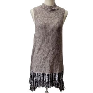 New Directions Soft Brown Mock Turtleneck Sweater Dress with Fringe