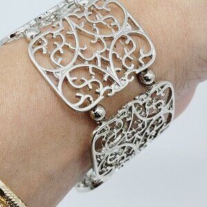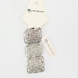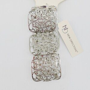 New Directions Stretch Metal Open Work Panel Bracelet SIlver Tone New On Card